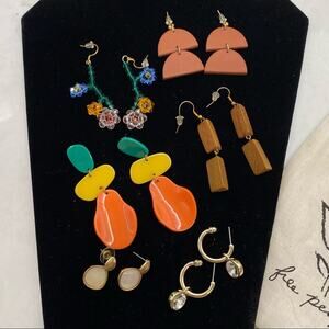 Terrific bundle of Free People Earrings ! Super cute flowers beaded , wood , resin , and hoops. Nice selection you get all 6 plus the pouch.