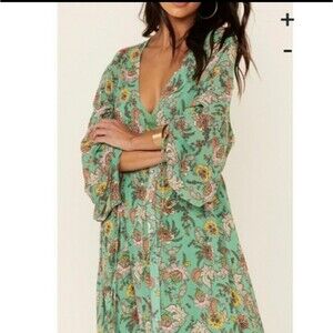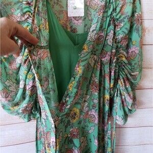 Free People Earthfolk Button Front V-neck Ruched Sleeve Floral Print Maxi Dress