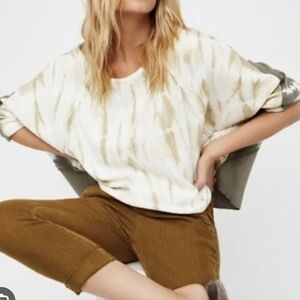 Free People East Meets West Tie Dye Neutral Tones Loose Relaxed Off Shoulder Top