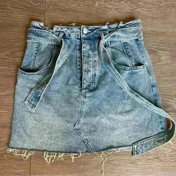Free People East of Eden Distressed Mini Denim Jean Skirt Size 29 OB1239063