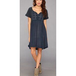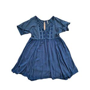 Free People Easy Babydoll Dress Embroidered Mirrored Blue M A001231