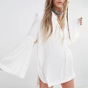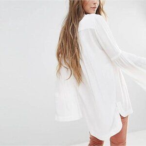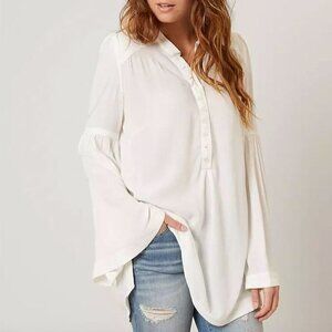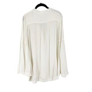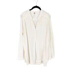 Free People Easy Girl Bell Sleeve High Low Hem Henley Crepe Blouse Ivory Small