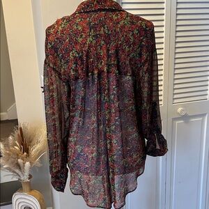 Free People Easy Rider Sheer Floral Button Down