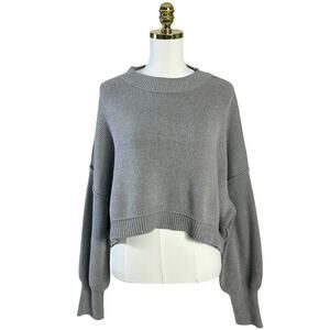 Free People Easy Street Crop Pullover Sweater in Grey Size Large Preppy Fall
