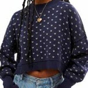 Free People Easy Street Cropped Crew Neck Sweater Navy Patterned – Size M – NWT