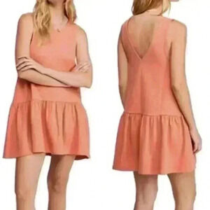 Charm all day long in this textured sleeveless shift styled with a dipped back and flouncy hem.