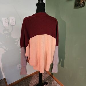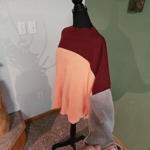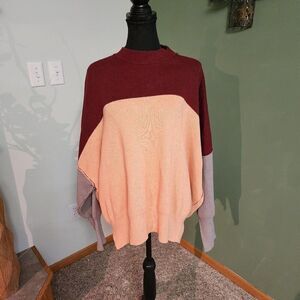Free People Easy Street Oversized Pullover Sweater Sz XS Peach Gray Burgundy