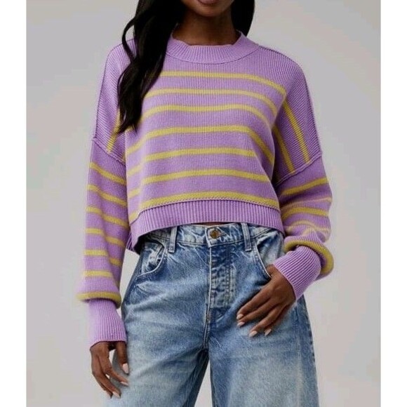 Free People Easy Street Sweater Womens Size Large Stripes Slouchy Fall Winter