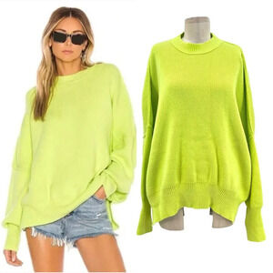 Free People Easy Street Tunic Sweater Neon Lime Green Oversized Size XS