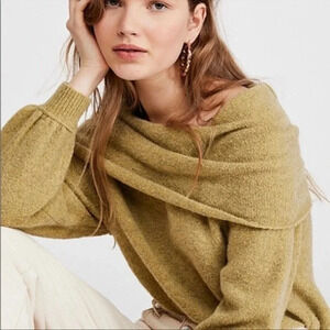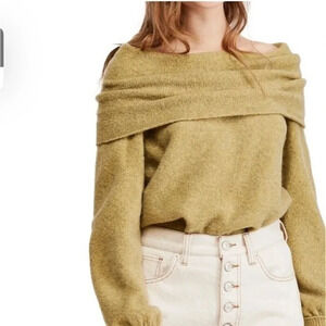 Free People Echo Beach Over the Soulder Light Green Pullover XS