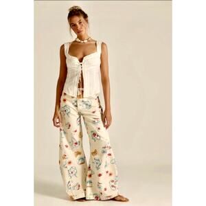 Free People Eden Printed High Slouchy Flare Jeans Playful Brunch 29