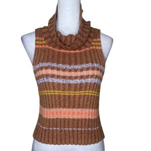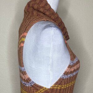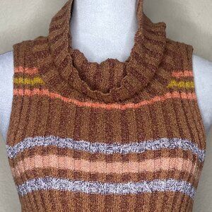 This sleeveless vest features a turtleneck and is made from a comfortable cotton blend knit fabric. Perfect for casual occasions in the winter, fall, or spring, this vest adds a pop of color with its rainbow theme and classic style. The brand, Free People, ensures quality and a regular fit for a flattering look.