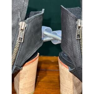 Free People Effie Black Leather Peep Toe Heel Booties size 38 euro