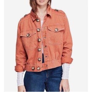 Free People Eisenhower Denim Jacket Boxy Fit Terracotta Orange Small