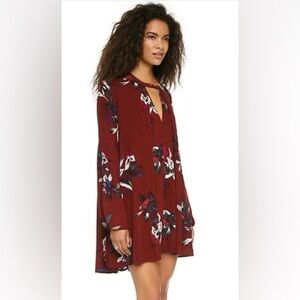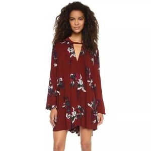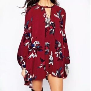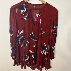 Free People Electric Orchid Print Swing Tunic in Scarlet Combo, Sz XS, Burgundy
