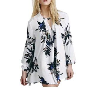 Free People electric orchid print in light stone combo tunic. Good condition. NO TRADES.