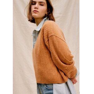 Free People | Elias 100% Cashmere V-Neck Sweater Cinnamon Tan
