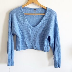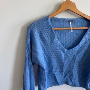 Free People Elias Blue Cashmere V Sweater soft plus knit size XS