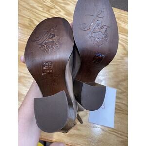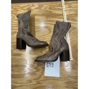 Free People Elle Ankle Boots 7.5/38 Brown Leather Block Heel Back Zip Round Toe