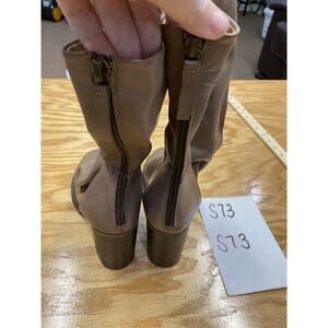Free People Elle Ankle Boots Women 7.5 Brown Leather Block Heel Back Zip Round Toe