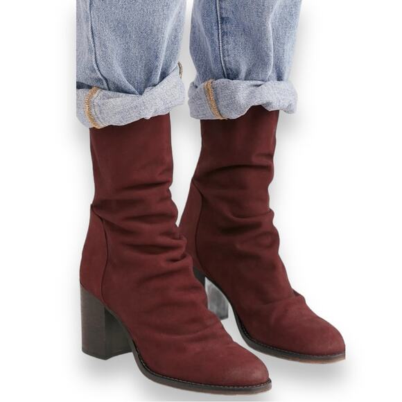 Free People Elle Block Heel Nobuck Slouchy Boots In Bordeaux Women’s Size 36