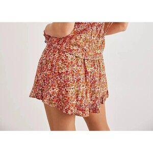 Free People Ellia Printed Shorts Floral Smocked Ruffle Pull-On Lace M NEW 283342