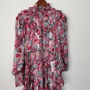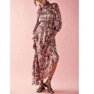 Free People Elliatt Dorian Floral Ruffle Drapey Smocked Maxi Dress Pink/ Rose M