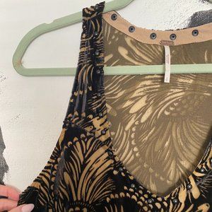 Free People Ellie Mini Dress in size small; black and gold velvet burnout with studded v-neck detail; fully lined except for back panel of dress.