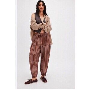 Free People Ellie Striped Pull-On Barrel Pants Extra Small XS Daisy Combo New