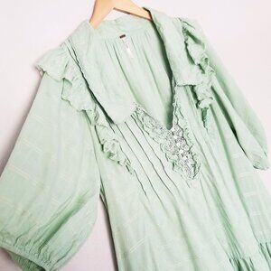 Free People Elora Pleated Ruffle Mini Dress L WindownpaneMermaid Tail Green $148