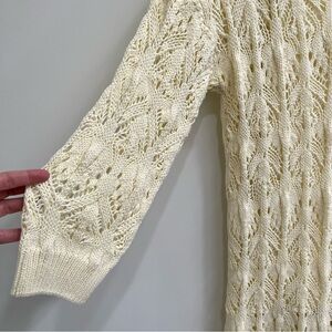 Free People Elton Cream Crochet Knit Long Sleeve Mini Dress Swimsuit Cover