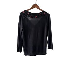 Free People Embellished Cardigan Black Beads Sequins Size S Boho Y2K Style
