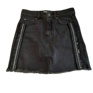 Free People Embellished Mini Side Stripe Sequined Black Jean Skirt Womens Size 6