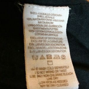 Flowy swing dress with beautiful floral embroidered design. Elastic band at bust and cuffs. Deep "V" in back. Lined.