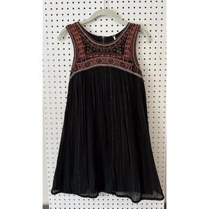 Elevate your wardrobe with this stunning Free People Embroidered Beaded Aztec Dress in size 4. The dress features intricate beadwork and an Aztec pattern that adds a touch of bohemian style to any occasion. The hipster, hippie, and bohemian themes of the dress make it perfect for parties, cocktail events, casual outings, and workwear. The short dress length and mini style make it a great choice for those who want to show off their unique fashion sense. The black color of the dress complements any skin tone and can be paired with accessories to create a variety of looks.