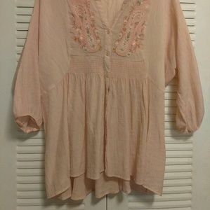 Beautiful button down blouse with 3/4 sleeves and embroidery. Excellent condition. Would fit size large no problem