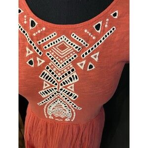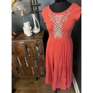 Free People Embroidered Coral Dress Cutouts Boho Gauze Skirt Cottagecore S