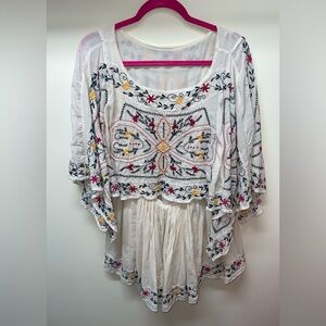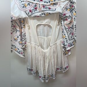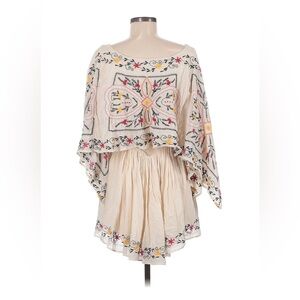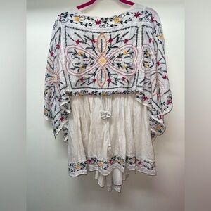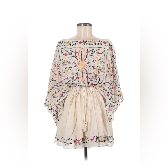 Chic mini dress with intricate embroidery. Features floral and geometric patterns. Perfect for casual outings.