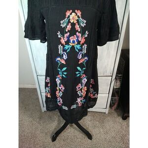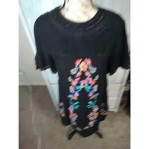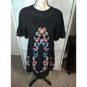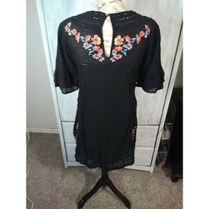 Free People Embroidered Dress Black Xs Boho Cottagecore Hippie Y2k