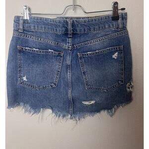 Free People Embroidered Floral Distressed Denim Mini Skirt Size 26 Wild Rose