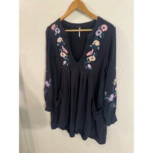 Free People Embroidered Floral Pocketed Mia Mini Dress