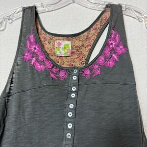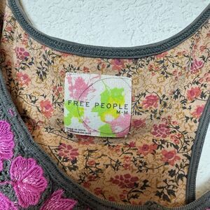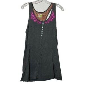 Free People Embroidered Floral Tank Top Tunic 100% Cotton Gray Women’s M Flaws