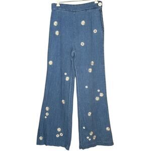 Free People Embroidered Flower Jeans Wide Legs Sz:26 Ret$168 "Festival Ready".
