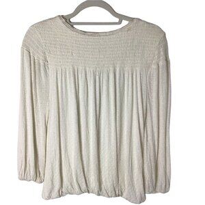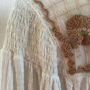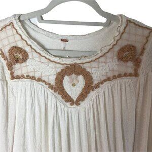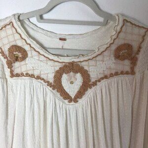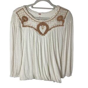 Free People Embroidered Long Sleeve Pleated Top Cream Size S