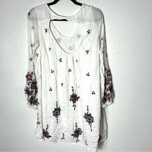 Free People Embroidered Oxford Swing Cut Out Mini Dress XS