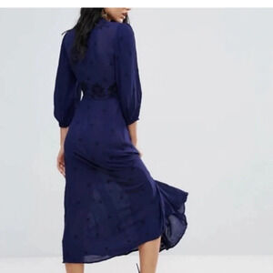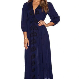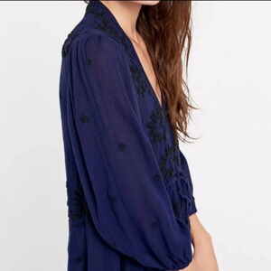 Free People Embroidered V Neck Dress in Deep Navy Combo