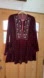 Gently used. Fits S/M. Burgundy plum color with pockets! Two buttons in the front to adjust neckline.