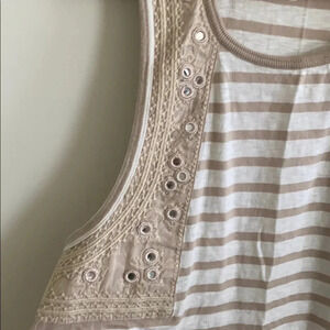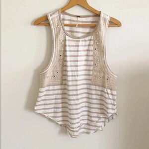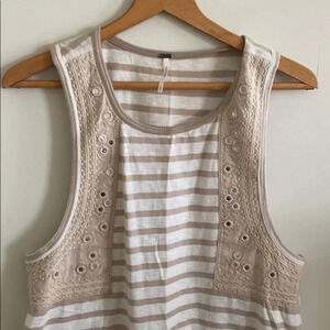 Free People Embroidered tan and white stripped Mirror Tank Top