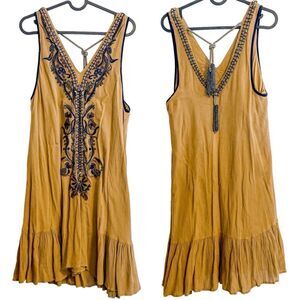 Free People Embroidered Tassel Mini Dress Mustard S