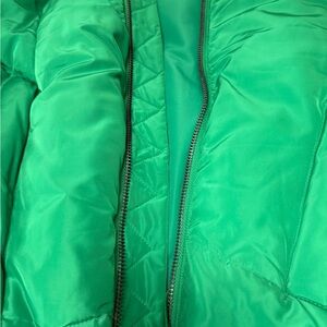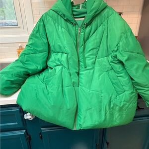 Vibrant emerald green jacket by Free People. Ideal for chilly days. Pockets on the front. Never worn.